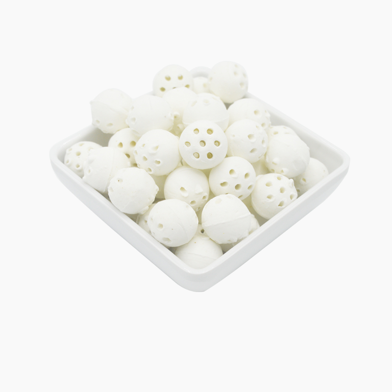 開孔瓷球是在惰性瓷球基礎上開發(fā)的新產品,它以球體直徑軸心進行開孔,既具有如惰性瓷球那樣一定的機械強度、化學穩(wěn)定性和熱穩(wěn)定性,又增加了比表面積和空隙率,從而增加了物料的分散性和通量,降低了系統(tǒng)的阻力。開孔瓷球自投放市場以來,廣泛應用于石油、化工和天然氣行業(yè)替代惰性瓷球作催化劑的覆蓋支撐填料。