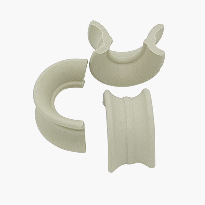 陶瓷矩鞍環(huán)的形狀介于環(huán)形與鞍形之間,因而兼有兩者之優(yōu)點(diǎn)。其填料床層具有較大的空隙率,床層內(nèi)多為圓弧形液體通道,減少了氣體通過床層的阻力,也使液體向下流動時的徑向擴(kuò)散系數(shù)減小。