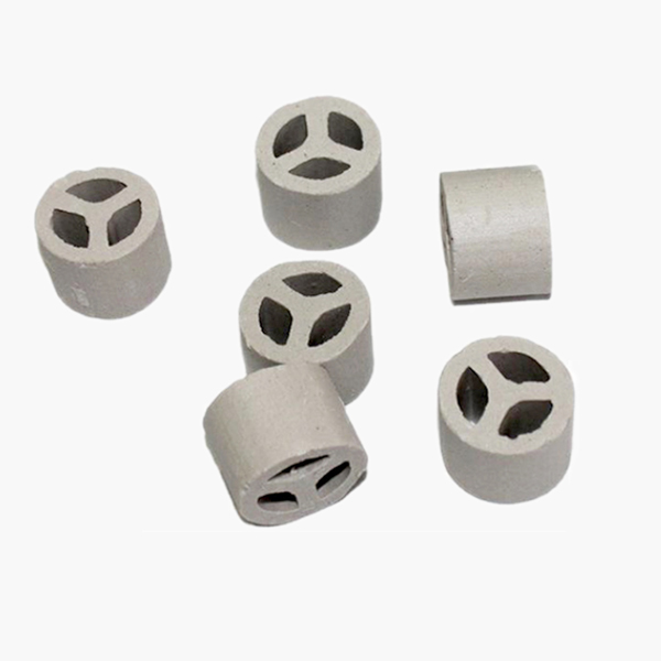 陶瓷三丫環(huán)填料是一種經(jīng)外觀獨特設計加工成的一種新型高效散堆填料,產品高徑比約為2:1,內部設有一個或三個“Y”型隔板,這樣增大比表面積,提高了汽液分散性能,使汽液接觸更充分。三丫環(huán)填料是從階梯環(huán)、共鉅環(huán)、扁環(huán)、矩鞍環(huán)的基礎上以及在形狀、外觀和結構綜合考慮,進行取長補短而改進的。
