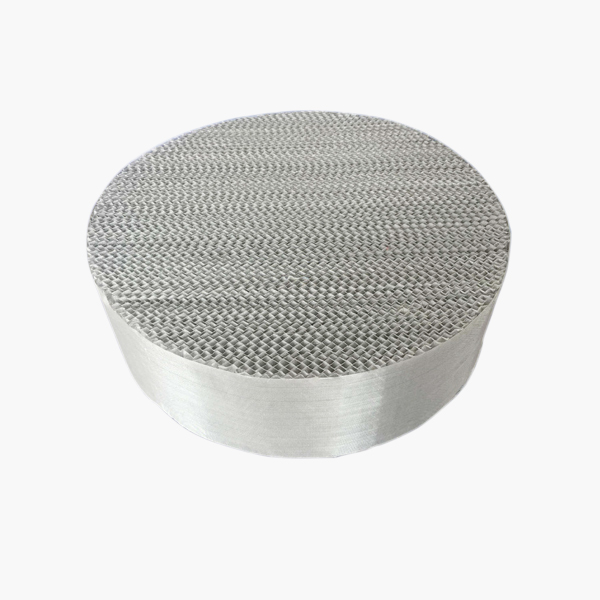 金屬絲網(wǎng)填料是目前世界各國應(yīng)用比較廣泛的高效填料,它是由若干平行直列的金屬波紋網(wǎng)片排列組成的圓盤狀填料。它具有比表面積大、孔隙率大、重量輕;氣相通路傾角小、有規(guī)則、壓降低;徑向擴散良好、氣體接觸充分等特點。
