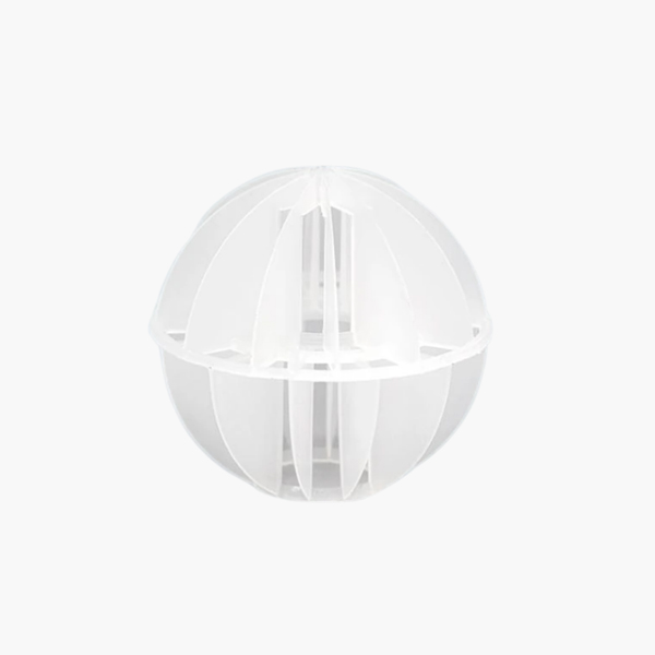 塑料多面空心球由兩個(gè)半球形成一個(gè)球體,每個(gè)半球由若干半扇形葉片組成 ,上下葉片交錯(cuò)排列。該球的優(yōu)點(diǎn)是很容易在填料層完全堆疊,但不會(huì)造成橋接和孔效應(yīng)現(xiàn)象,因此,促進(jìn)了氣液分布均勻,多面空心球具有氣速高,葉片多,阻力?。槐缺砻娣e大,可充分解決氣液交換;具有阻力小操作彈性大等特點(diǎn)。