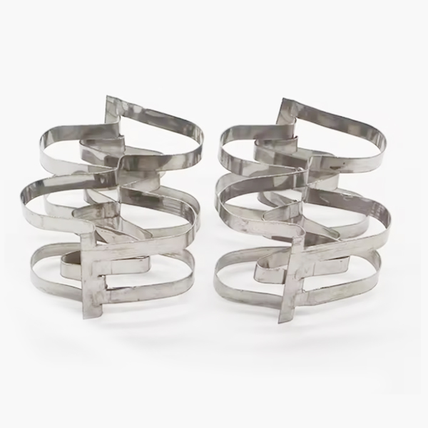 金屬雙層共軛環(huán)又叫金屬超級拉西環(huán)、異拉西環(huán),該填料主要材質(zhì)有碳鋼、鋁合金、不銹鋼201、301、304、321、316、316L等材質(zhì)。該產(chǎn)品相對于其他傳統(tǒng)介質(zhì)的擁有超過33%的負(fù)載能力,幾乎67%為低壓力下降超過12%提高分離效率。其結(jié)果是在能源和降低投資成本。該產(chǎn)品可直接替代廣泛使用的拉西環(huán)填料。